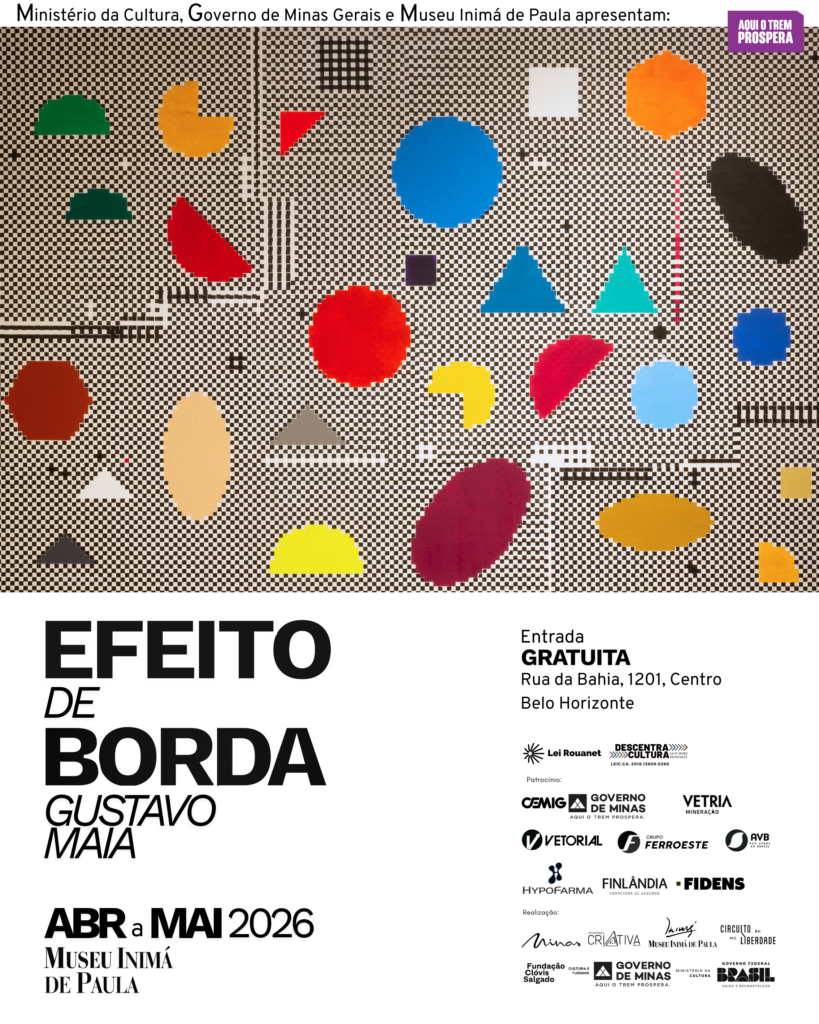 Onde uma imagem termina e a outra começa? Essa pergunta orienta Efeito de Borda, nova exposição do artista Gustavo Maia, apresentada pelo Ministério da Cultura, pelo Governo de Minas Gerais e pelo Museu Inimá de Paula. A mostra reúne 30 obras que investigam a pintura como uma zona de contato um território híbrido em que diferentes regimes de imagem se encontram, se contaminam e se transformam.